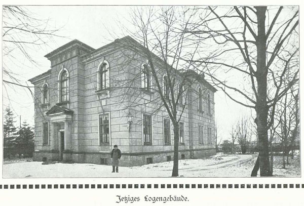 konnte durch eine hohe Spende eines unbekannten Bruders die Witwen- und Waisenkasse ins Leben gerufen und ein neues Logengebäude errichtet werden.Dieses wurde aber nur bis 1873 genutzt, und die Brüder zogen 1874 in ein anderes Haus um. Hier blieb die Loge bis 1882.